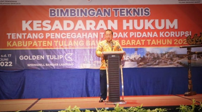 rEposisi.com- Gubernur Arinal Djunaidi membuka Kegiatan Bimbingan Teknis (Bimtek) Kesadaran Hukum Tentang Pencegahan Tindak Pidana Korupsi Kabupaten Tulang Bawang Barat (Tubaba) Tahun 2022, di Hotel Golden Tulip Springhill Bandar Lampung, Rabu (15/6/2022).