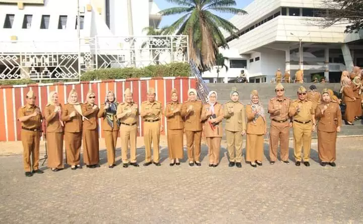 rEposisi.com – Gubernur Lampung diwakili Staf Ahli Bidang Kemasyarakatan dan Sumber Daya Manusia, Intizam, menjadi pembina apel gabungan mingguan di lingkungan Sekretariat Daerah Provinsi Lampung, di lapangan Korpri, Senin (23/10/2023).