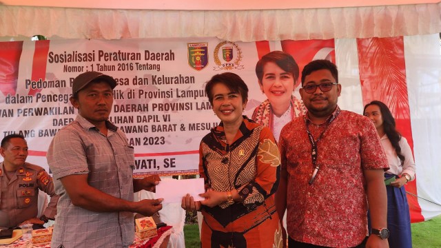 rEposisi.com – Anggota DPRD Provinsi Lampung Budhi Condrowati,S.E menggelar Sosialisasi Peraturan Daerah (Sosper) Perda Nomor 1 Tahun 2016 tentang Pedoman Rembug Desa Dan Kelurahan Dalam Pencegahan Konflik di Provinsi Lampung.