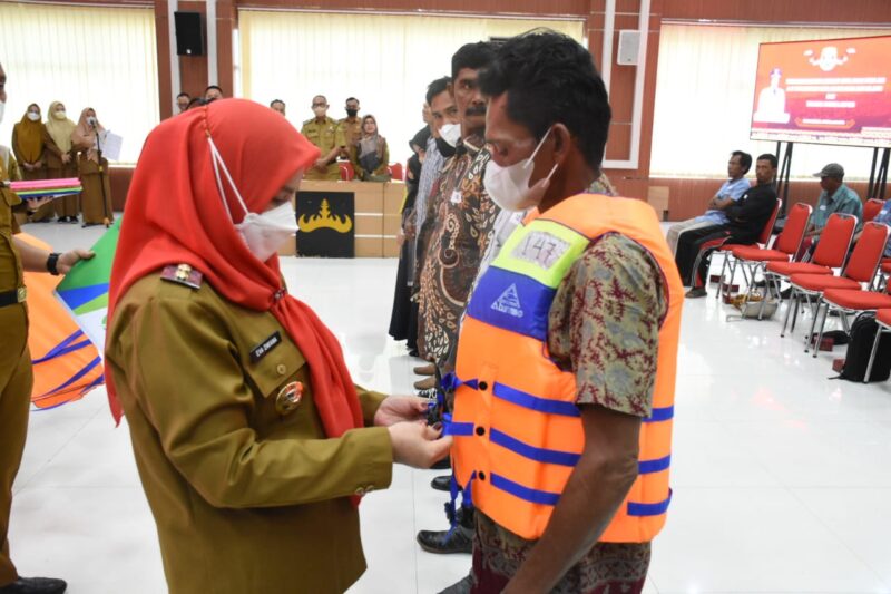 rEposisi.com – Walikota Bandarlampung Hj. Eva Dwiana memberikan bantuan asuransi perlindungan diri kepada 250 nelayan dan pelampung (life jacket) untuk alat keselamatan kerja, di Gedung Semergo, Bandarlampung, Senin (5/06/2023).