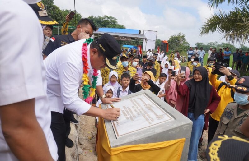 rEposisi.com — Bupati Lampung Tengah, Musa Ahmad meresmikan jembatan gantung di Kecamatan Anak Tuha, Rabu, (5/1/2022).
