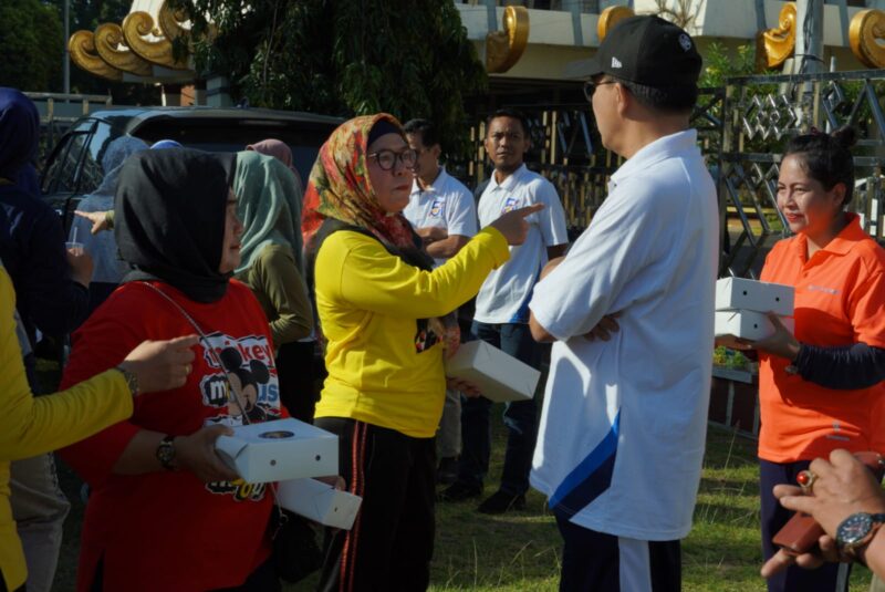 Kegiatan Korpri Berbagi dilaksanakan dengan membagikan sebanyak 250 nasi kotak kepada peserta senam yang merupakan pegawai dan staf dilingkungan Pemerintah Provinsi Lampung. (Dinas Kominfotik Provinsi Lampung)