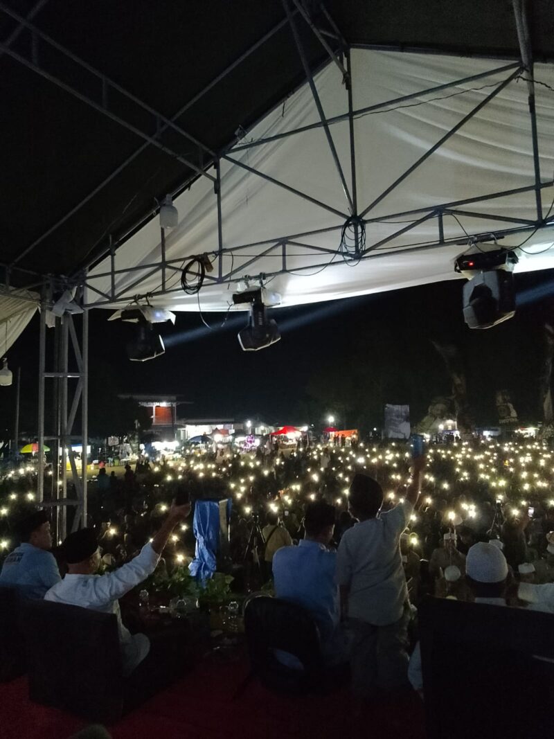 Acara yang berlangsung hingga malam ini diisi dengan lantunan sholawat yang menggema di seluruh lapangan, membawa suasana yang penuh ketenangan dan kekhusyukan, hingga hujan deras di Lapangan Merdeka’ Desa Gedung Sari Kecamatan anak ratu aji.