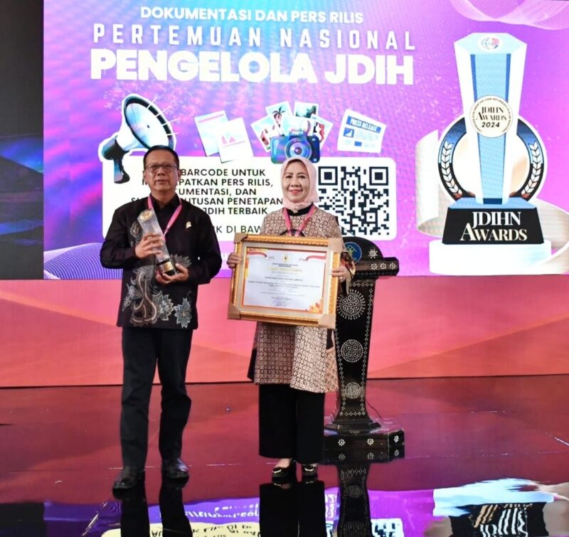 rEposisi.com – Sekretariat DPRD Provinsi Lampung kembali meraih penghargaan Terbaik I tingkat Nasional dalam pengelolaan Jaringan Dokumentasi dan Informasi Hukum (JDIH) dalam ajang JDIH Award di Aston Kartika Grogol Hotel and Conference Center, Jakarta Barat, Kamis (22/8/2024).