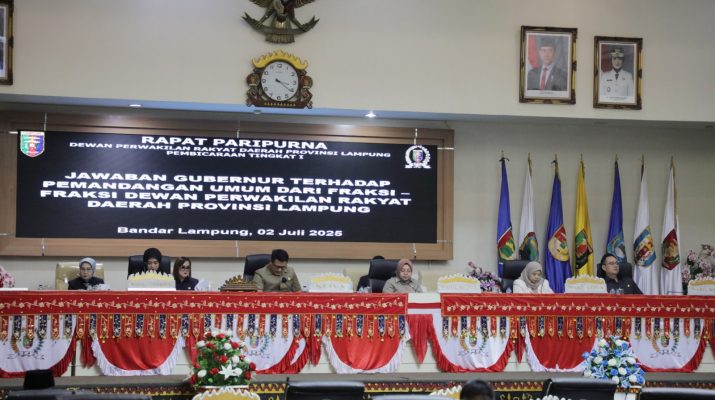 Jawaban Gubernur Lampung Rahmat Mirzani Djausal tersebut disampaikan oleh Wakil Gubernur Lampung Jihan Nurlela dalam Rapat Paripurna Dewan Perwakilan Rakyat Daerah (DPRD) Provinsi Lampung di Ruang Sidang Paripurna DPRD Provinsi Lampung, Rabu (2/7/2025).