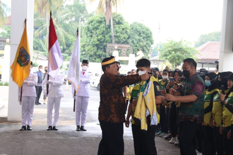 rEposisi.com- Gubernur Lampung Arinal Djunaidi bersama Komite Olahraga Rekreasi Masyarakat Indonesia (Kormi) Lampung melepas 542 peserta kontingen Festival Olahraga Rekreasi Nasional (Fornas) VI di Sumatera Selatan, pelepasan dilakukan di halaman Rumah Dinas Gubernur Lampung, Bandarlampung, Jumat (24/06/2022).