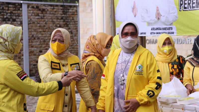 rEposisi.com – Ketua Ikatan Istri Partai Golkar Provinsi Lampung Riana Sari Arinal berbagi 100 nasi kotak sebagai menu berbuka puasa kepada masyarakat Bandar Lampung di sekitar Gedung Golkar, Pahoman pada, Jumat (08/04/2022)