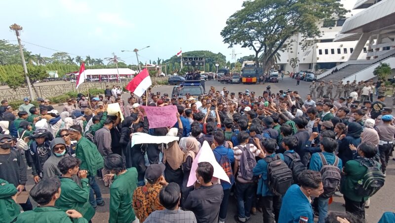 rEposisi.com – Ribuan mahasiswa dari berbagai universitas di Provinsi Lampung menggelar aksi damai di depan Gedung DPRD Provinsi Lampung, Selasa (14/11). Aksi ini bertujuan menyerukan penolakan terhadap praktik politik uang yang dinilai merusak demokrasi dan mencederai integritas Pilkada serentak 2024.