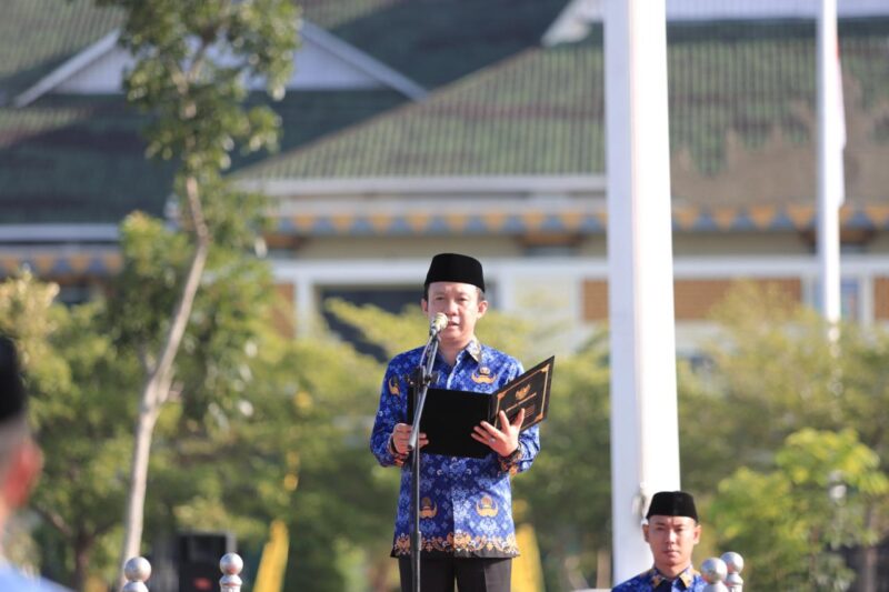 rEposisi.com – Pemerintah Kabupaten Pringsewu menggelar upacara peringatan HUT ke-60 Provinsi Lampung di lapangan pemkab setempat, Selasa (19/3/2024), dengan pembina upacara Penjabat Bupati Pringsewu Marindo Kurniawan.