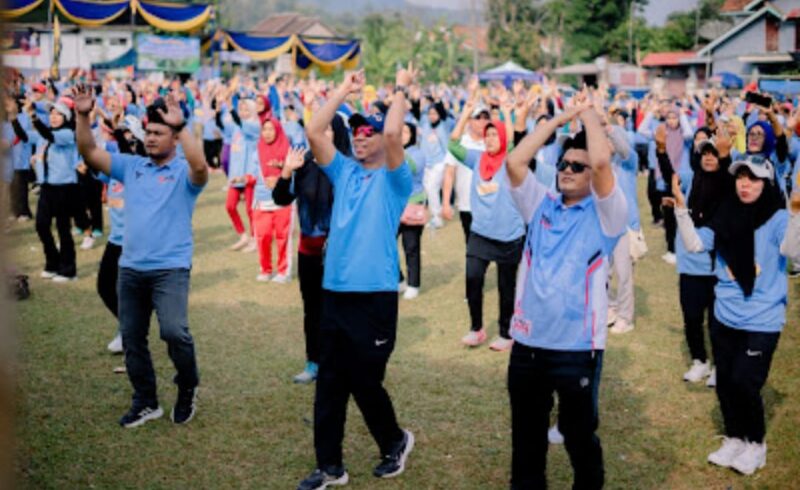 Mirza, yang didampingi oleh tokoh masyarakat dan petani, memulai acara dengan memberikan sambutan hangat kepada peserta yang hadir. Dalam sambutannya, ia menyampaikan apresiasi atas antusiasme masyarakat, khususnya para ibu-ibu yang mengikuti senam sehat dan petani yang tergabung dalam barisan caping.