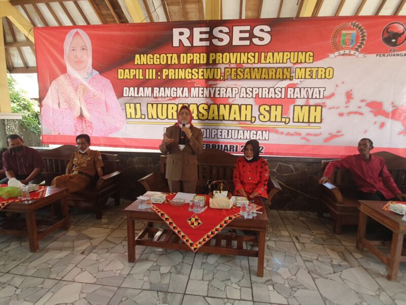 rEposisi.com – Legislator asal Fraksi PDIP Lampung Dapil III (Metro, Pesawaran dan Pringsewu) Nurhasanah melangsungkan kegiatan reses bersama DPC, PAC dan ranting se Kecamatan Pardasuka di Desa Wargo Mulya, Kabupaten Pringsewu.