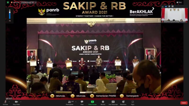 Kegiatan yang dikemas dalam acara bertajuk SAKIP & RB Award 2021 ini, diselenggarakan oleh Kementerian PANRB secara virtual dan diikuti juga oleh Kementerian/Lembaga, Pemerintah Provinsi, Kabupaten/Kota di seluruh Indonesia.