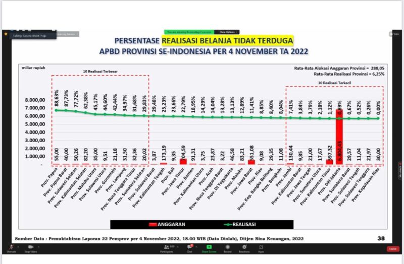 Mendagri menyampaikan 10 Provinsi dengan Persentase tertinggi realisasi APBD Provinsi se-Indonesia per 4 November TA 2022, Provinsi Jawa Barat, Lampung, Bengkulu, Jawa Tengah, Sulawesi Utara, DI Yogyakarta, Jawa Timur, Riau, Maluku Utara, dan Banten.