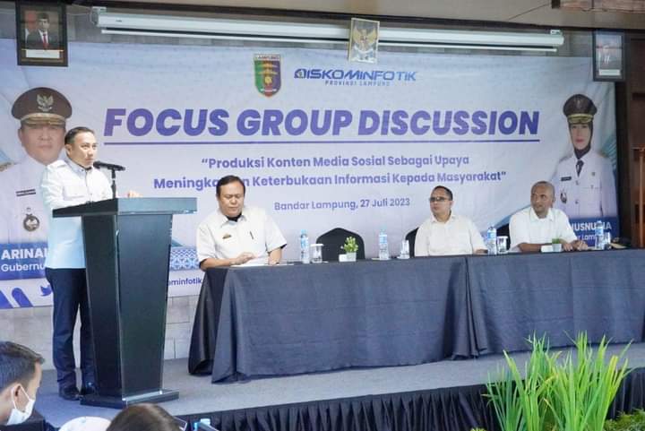 Sekretaris Dinas Kominfotik Provinsi Lampung Elip Heldan mengatakan bahwa _Focus Group Discussion_ ini memiliki dua tujuan utama, pertama untuk memberikan pelayanan informasi kepada masyarakat secara luas, dan kedua untuk lebih fokus pada media sosial.