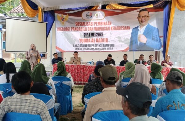 Pesawaran — Giat rutin Anggota DPRD Provinsi Lampung periode 2024 – 2029, menyapa masyarakat sesuai Daerah Pemilihan (Dapil), dengan kegiatan Sosialisasi Pembinaan Ideologi Pancasila dan Wawasan Kebangsaan (PIP-WK) terus dilakukan dalam setiap bulan. Hal itu, bertujuan memberikan pemahaman dan pengamalan nilai-nilai tentang pancasila secara utuh.