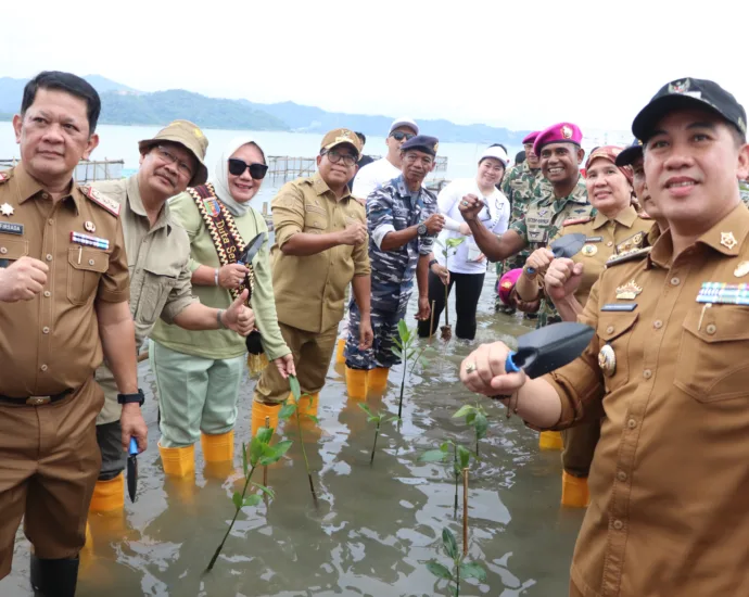 rEposisi.com – Penjabat Gubernur Lampung Samsudin melakukan penanaman 20.000 mangrove secara simbolis di Pantai Marine Eco Park, Brigif 4 Marinir, Kabupaten Pesawaran, Selasa (05/11/2024).