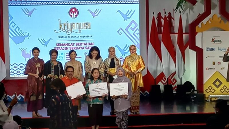 Pemenang lomba produk unggulan berpotensi disampaikan Ketua Dewan Juri Hesti, pada penutupan Kriyanusa 2022, di Jakarta Convention Center (JCC), Minggu (25/9/2022) sore.