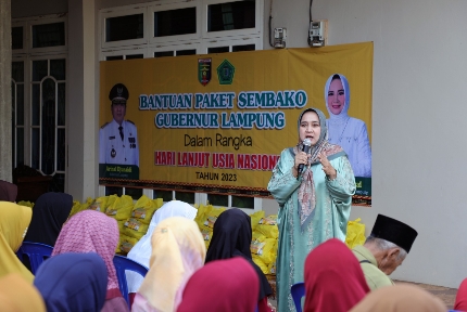 Ibu Riana juga menyampaikan pesan dari Gubernur Arinal Djunaidi dan Wakil Gubernur Ibu Chusnunia untuk menyampaikan bantuan pemenuhan dasar untuk bapak ibu semua.