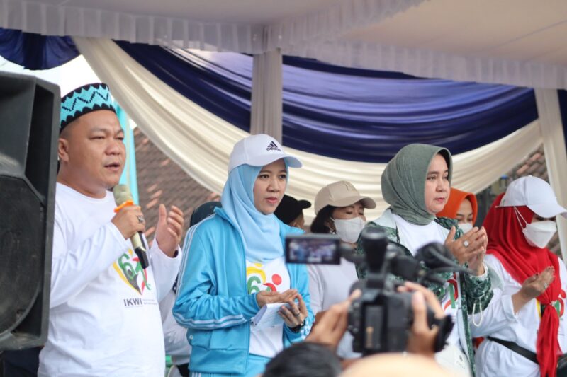 rEposisi.com- Ketua TP. PKK Provinsi Lampung Riana Sari Arinal melepas peserta Jalan Sehat dalam rangka HUT ke-61 Ikatan Keluarga Wartawan Indonesia (IKWI) Provinsi Lampung, di Balai Wartawan Hi. Solfian Akhmad, Minggu (31/07/2022).