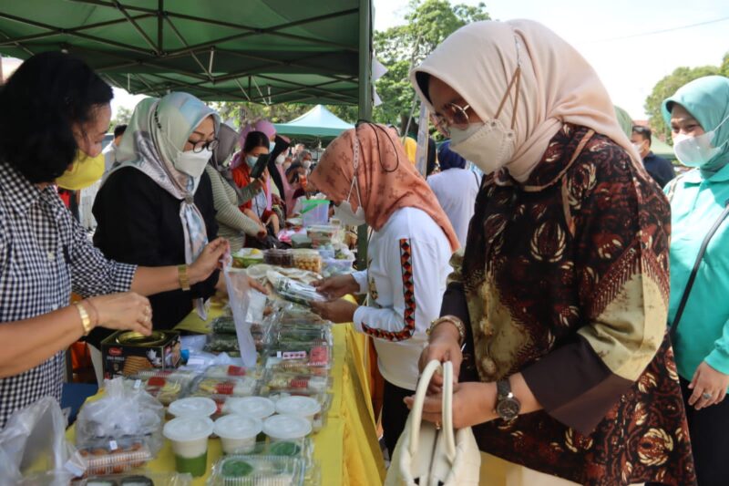 rEposisi.com – Ketua Dekranasda Provinsi Lampung, Riana Sari Arinal, meninjau kegiatan Bazar Takjil di Kantor Dekranasda Provinsi Lampung, Minggu (10/4).