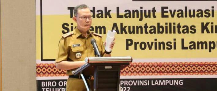 rEposisi.com- Gubernur Lampung Arinal Djunaidi, diwakili Sekretaris Daerah Provinsi Lampung Fahrizal Darminto, membuka Rapat Koordinasi Tindak Lanjut Evaluasi Reformasi Birokrasi (RB) dan Sistem Akuntabilitas Kinerja Instansi Pemeritah (SAKIP) Provinsi Lampung tahun 2022 di Hotel Golden Tulip, Selasa (14/6/2022).