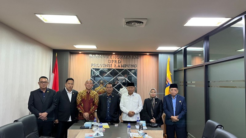 Di dalam ruang rapat, Ketua BK DPRD Lampung Abdullah Surajaya memimpin pemeriksaan bersama anggota BK lainnya: Budiman AS, Mikdar Ilyas, Fatikhatul Khoiriyah, Yudha Al Hajid, dan Elsan Tomi Sagita.