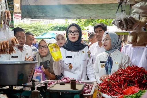 rEposisi.com – Wakil Gubernur Lampung, Jihan Nurlela melakukan peninjauan terkait Ketersediaan bahan pangan dan Harga Bahan Pokok menjelang Bulan Suci Ramadan bertempat di Pasar tradisional Kangkung, Rabu (26/02/2025).